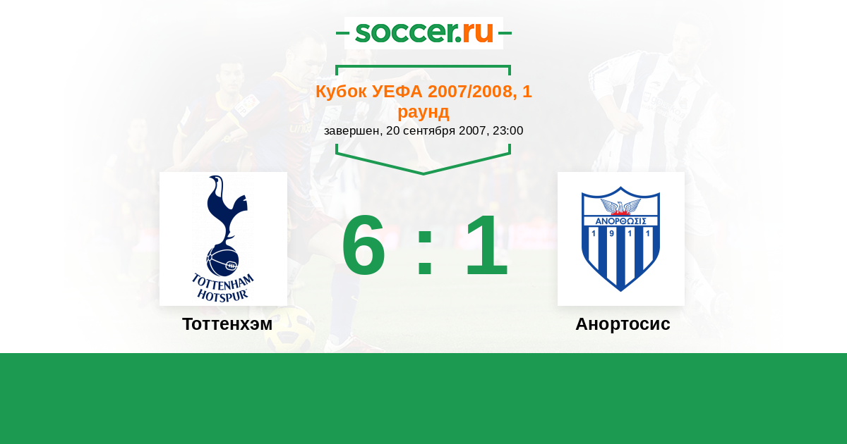 Тоттенхэм - Анортосис: обзор матча 20 сентября 2007