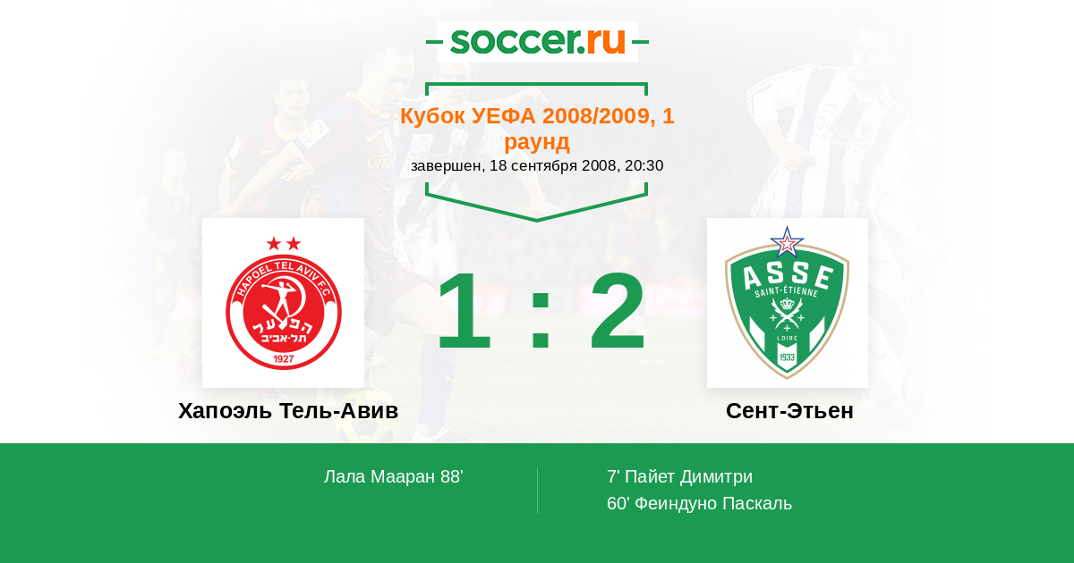 Хапоэль Тель-Авив - Сент-Этьен: обзор матча 18 сентября 2008