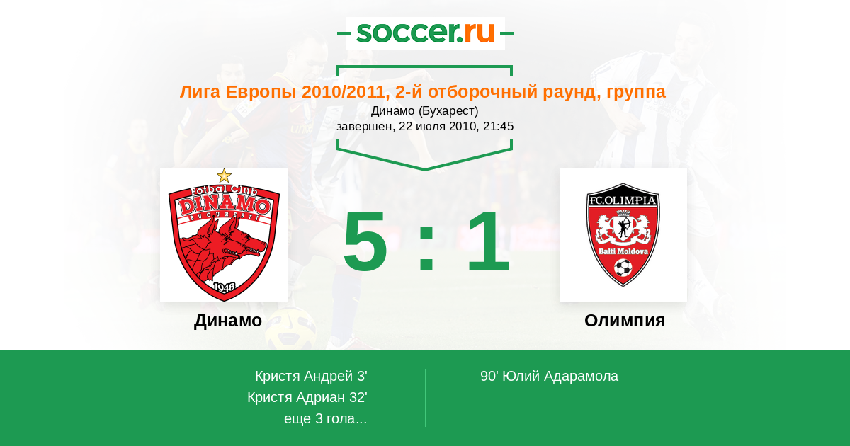 Динамо - Олимпия: обзор матча 22 июля 2010