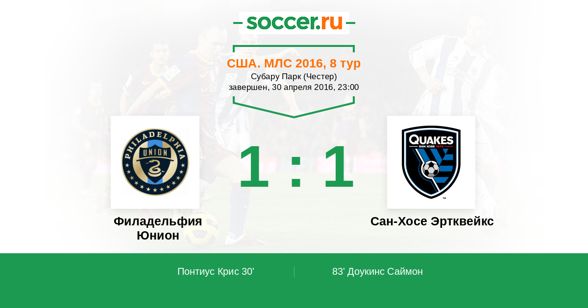 Филадельфия Юнион - Сан-Хосе Эртквейкс: обзор матча 30 апреля 2016