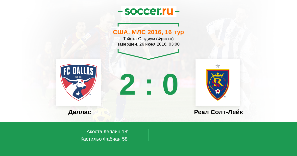Даллас - Реал Солт-Лейк: обзор матча 26 июня 2016
