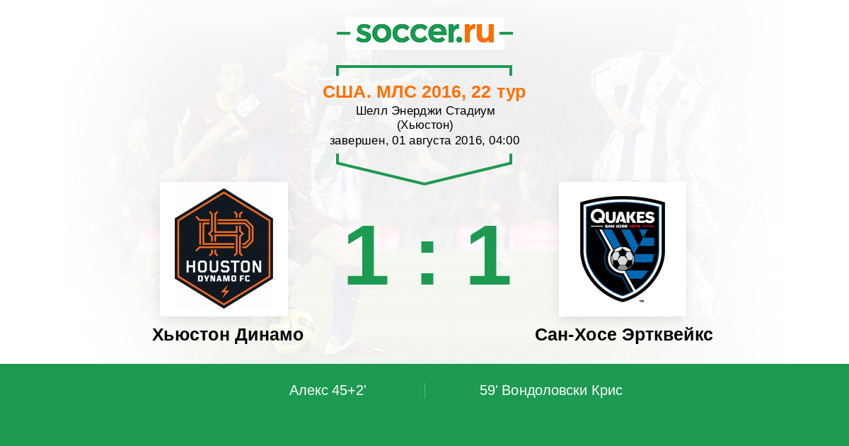 Хьюстон Динамо - Сан-Хосе Эртквейкс: обзор матча 1 августа 2016