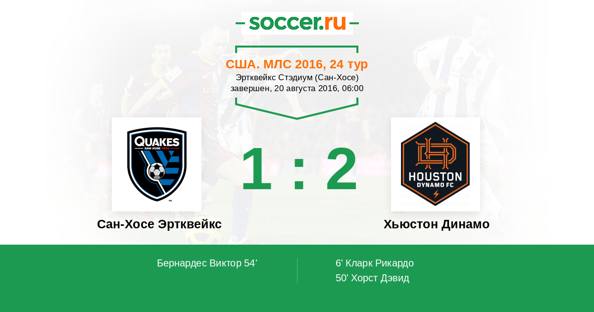 Сан-Хосе Эртквейкс - Хьюстон Динамо: обзор матча 20 августа 2016