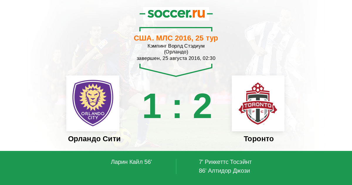 Орландо Сити - Торонто: обзор матча 25 августа 2016