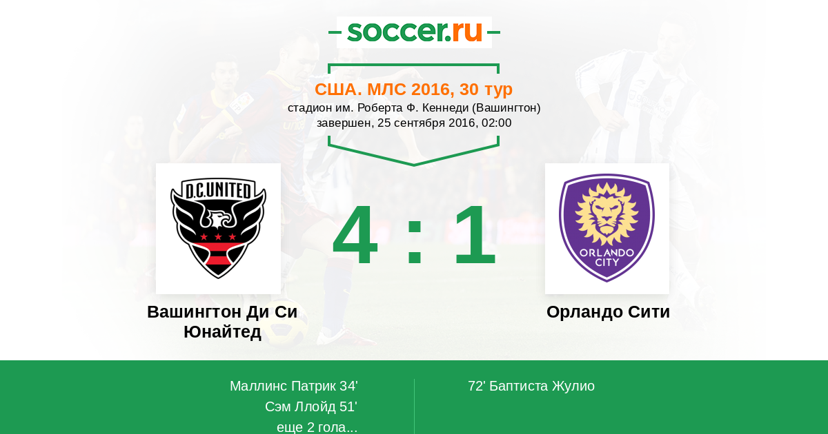 Вашингтон Ди Си Юнайтед - Орландо Сити: обзор матча 25 сентября 2016