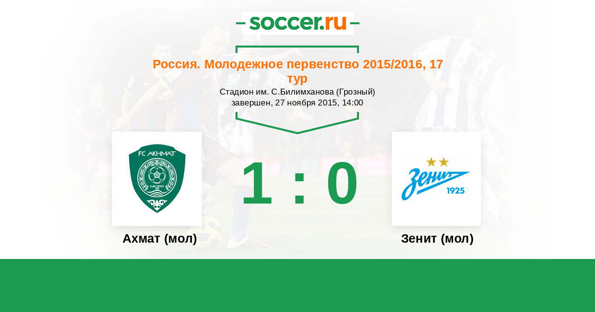 Терек (мол) - Зенит (мол): обзор матча 27 ноября 2015