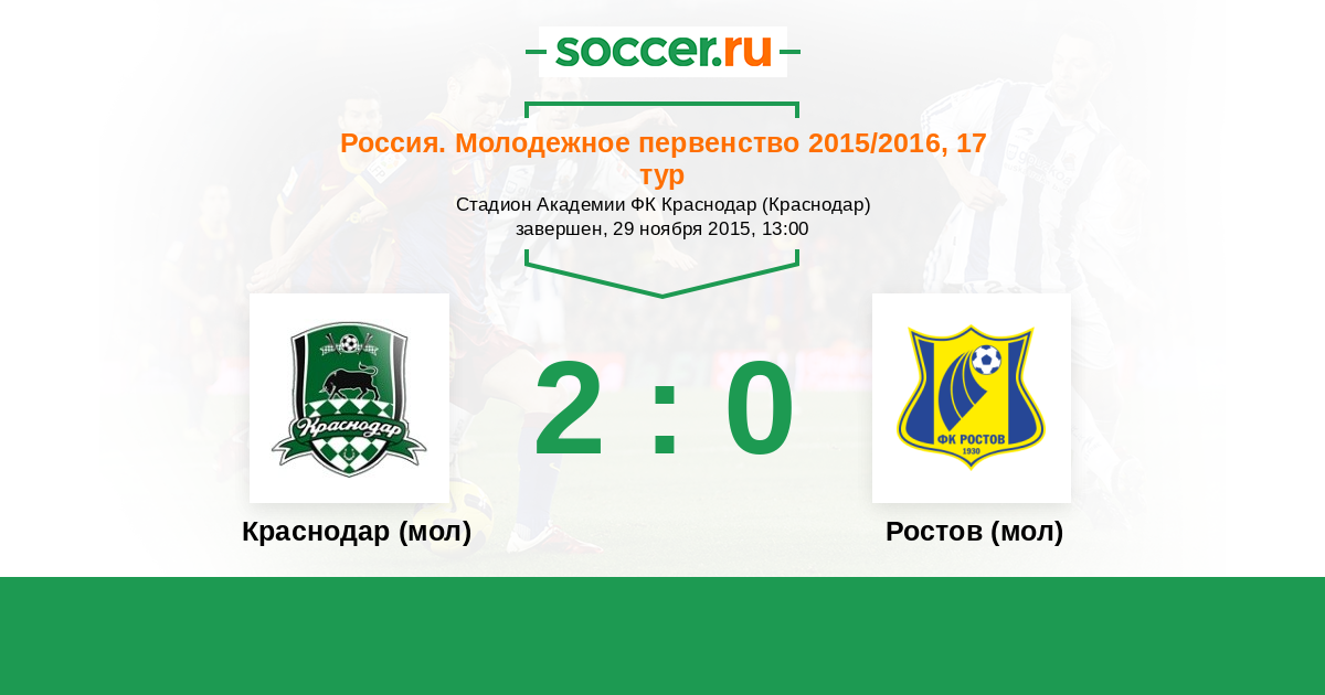 Краснодар (мол) - Ростов (мол): обзор матча 29 ноября 2015