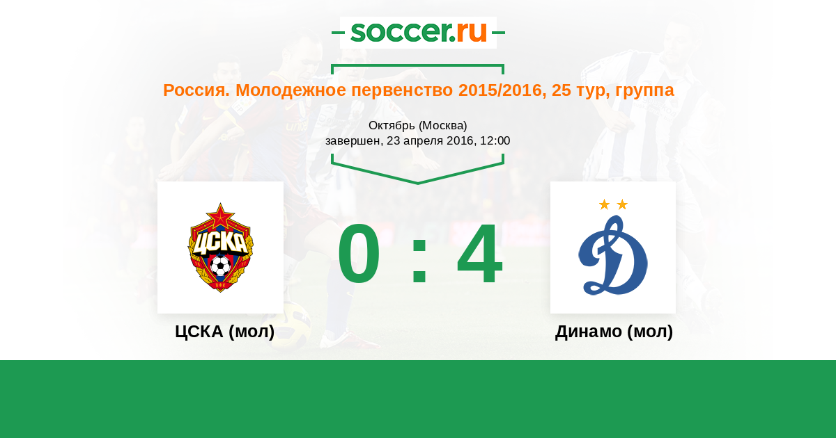 ЦСКА (мол) - Динамо (мол): обзор матча 23 апреля 2016