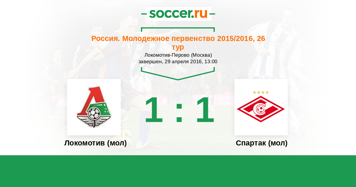 Локомотив (мол) - Спартак (мол): обзор матча 29 апреля 2016