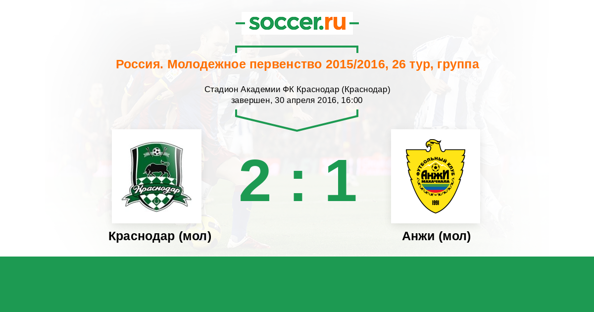Краснодар (мол) - Анжи (мол): обзор матча 30 апреля 2016