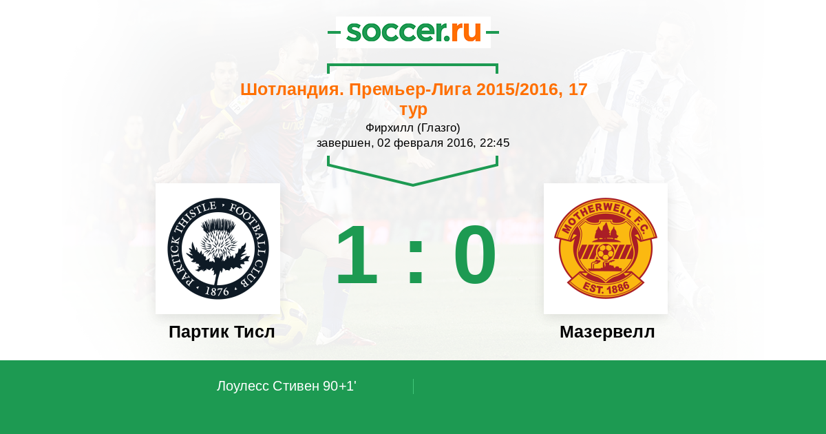 Партик Тисл - Мазервелл: обзор матча 2 февраля 2016