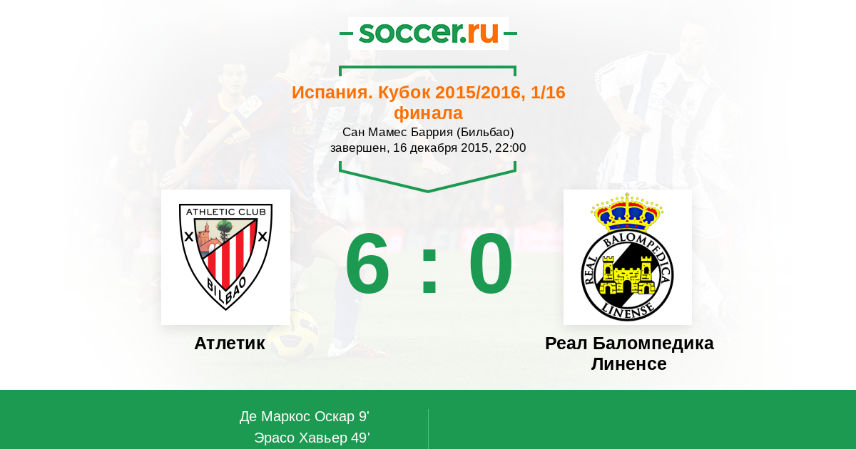 Атлетик - Реал Баломпедика Линенсе: обзор матча 16 декабря 2015