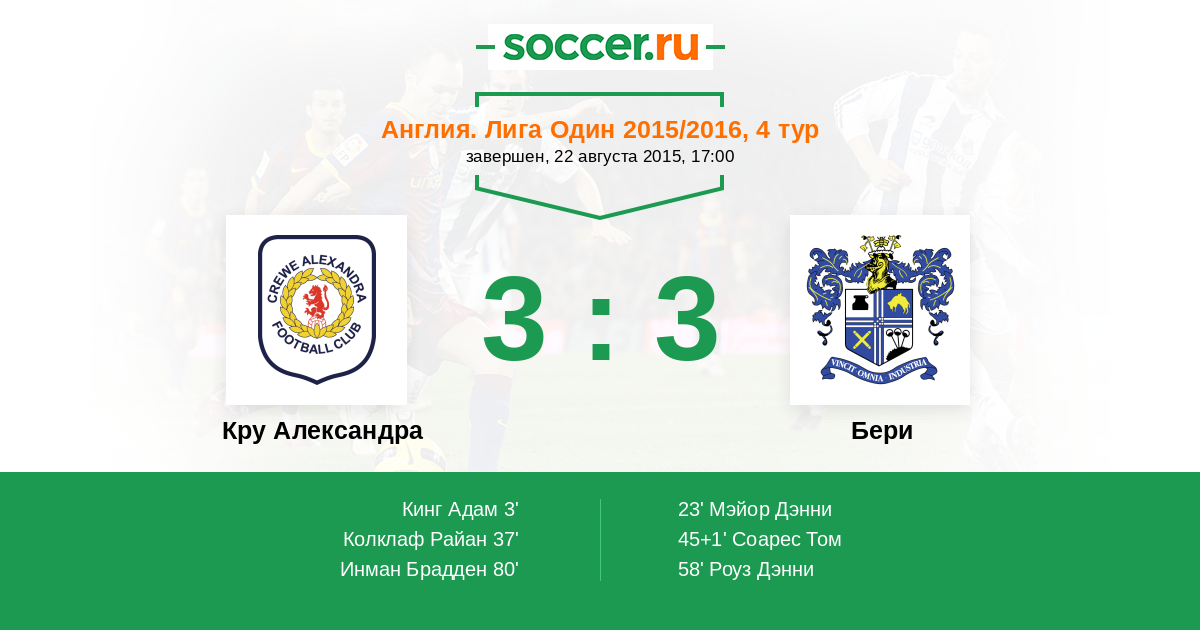 Кру Александра - Бери: обзор матча 22 августа 2015