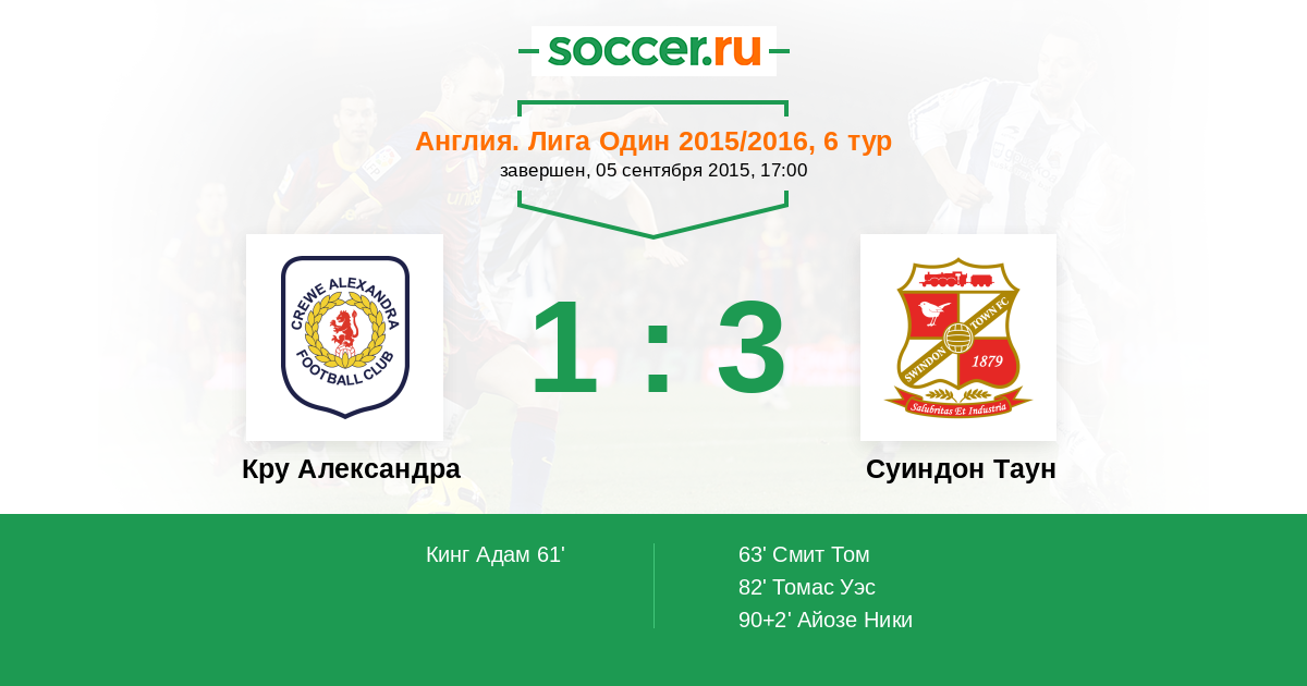 Кру Александра - Суиндон Таун: обзор матча 5 сентября 2015