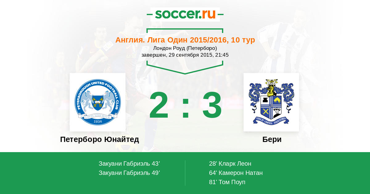 Петерборо Юнайтед - Бери: обзор матча 29 сентября 2015