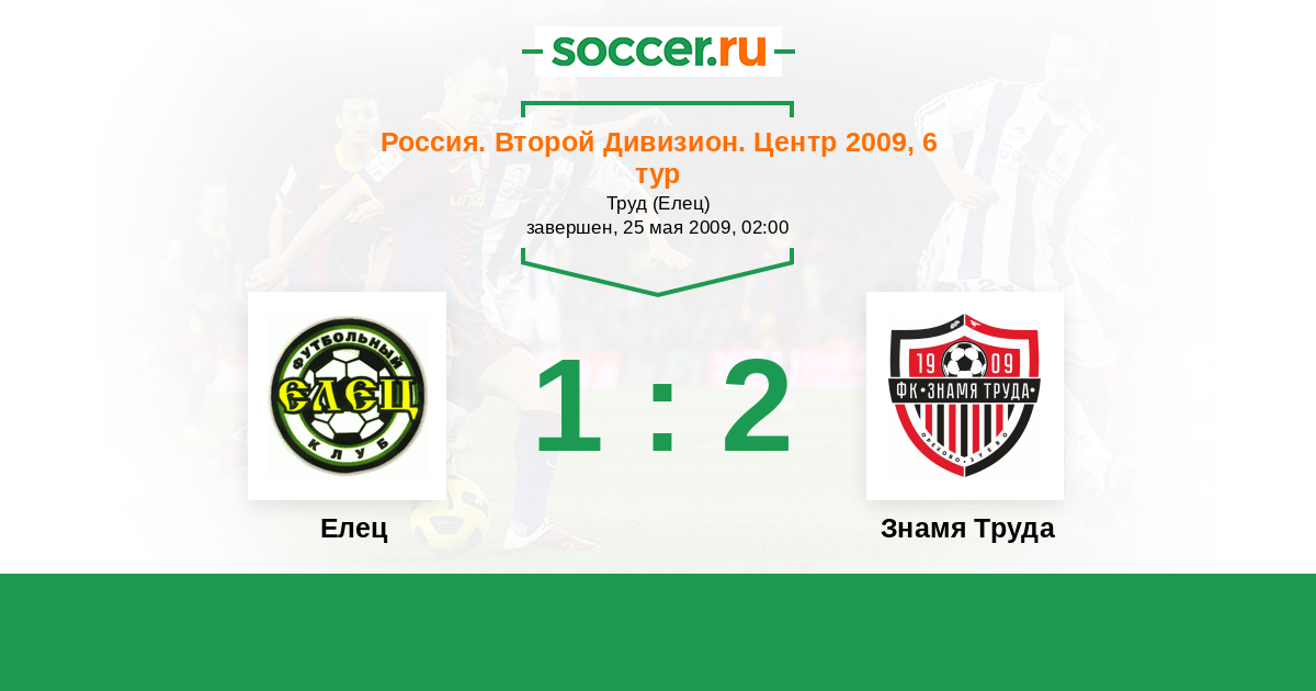 Елец - Знамя Труда: обзор матча 25 мая 2009