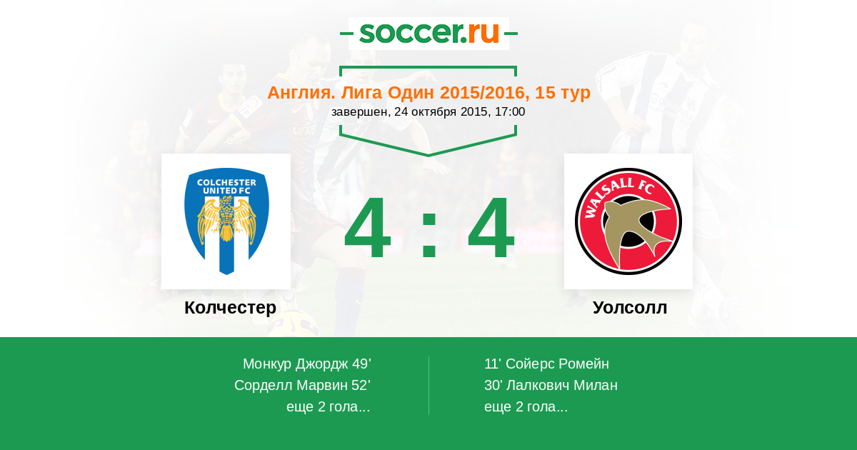 Колчестер - Уолсолл: обзор матча 24 октября 2015