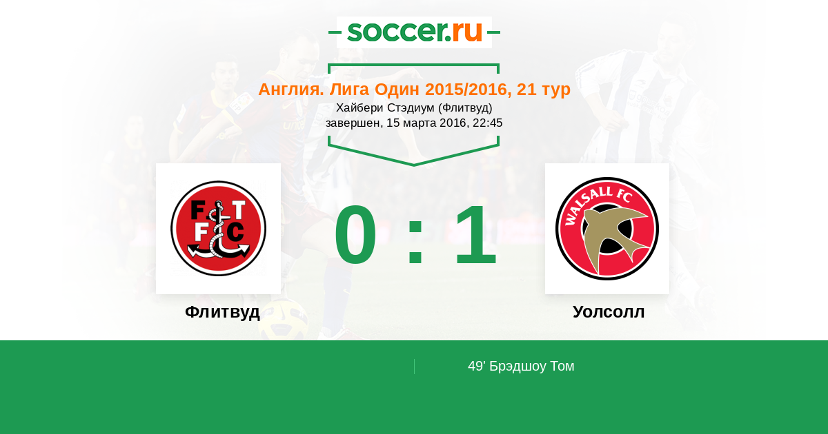 Флитвуд - Уолсолл: обзор матча 15 марта 2016
