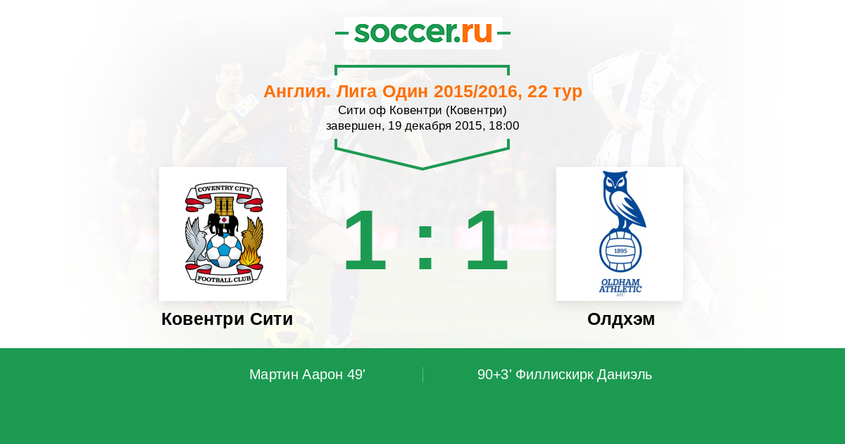 Ковентри Сити - Олдхэм: обзор матча 19 декабря 2015