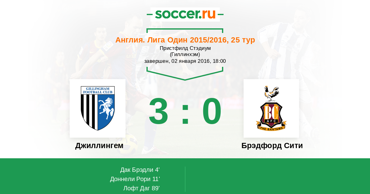 Джиллингем - Брэдфорд Сити: обзор матча 2 января 2016