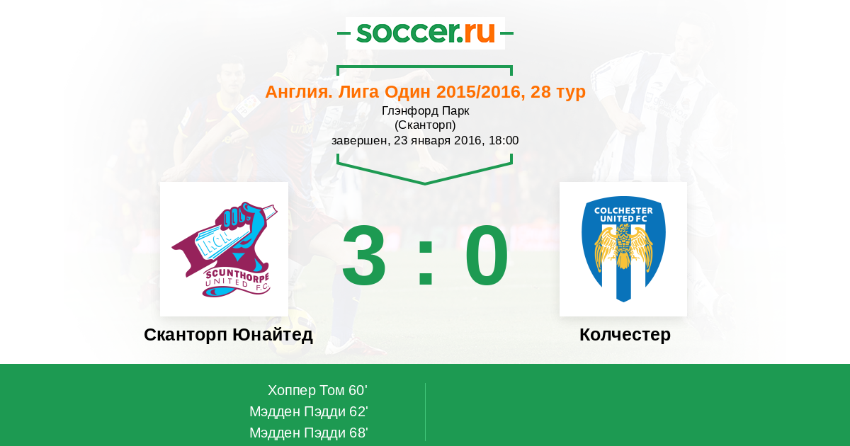 Сканторп Юнайтед - Колчестер: обзор матча 23 января 2016