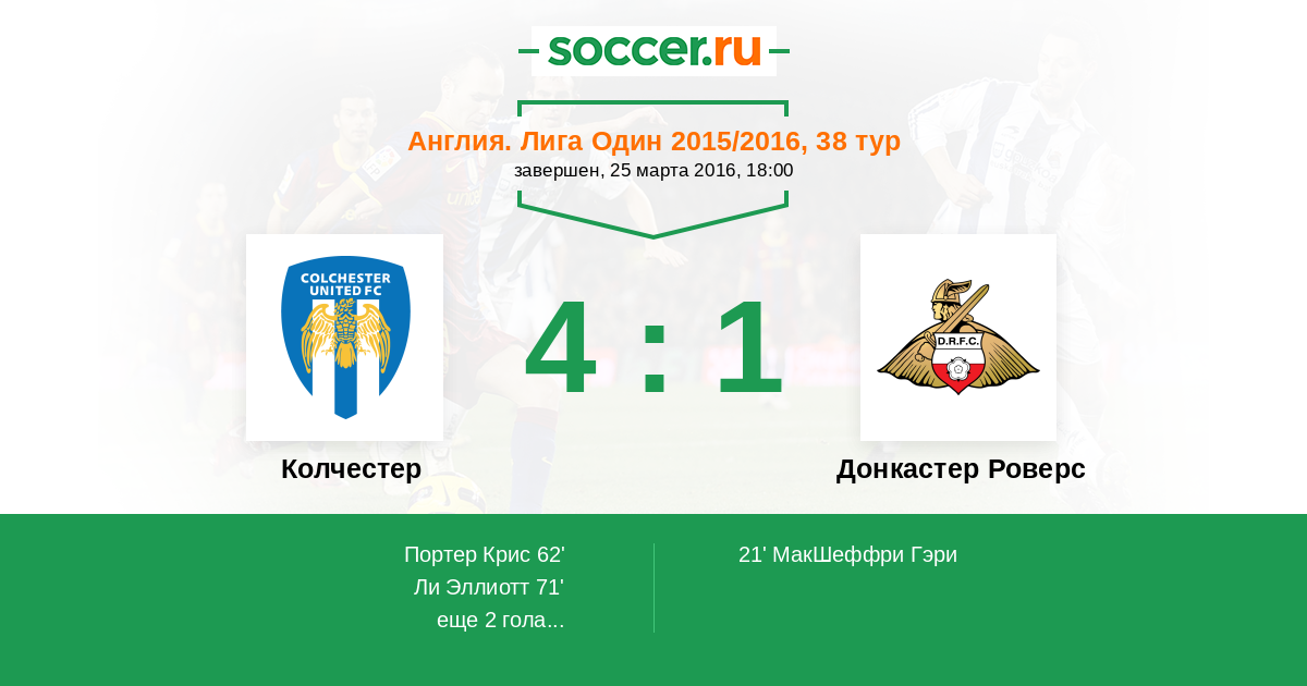 Колчестер - Донкастер Роверс: обзор матча 25 марта 2016