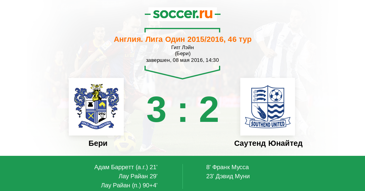 Бери - Саутенд Юнайтед: обзор матча 8 мая 2016