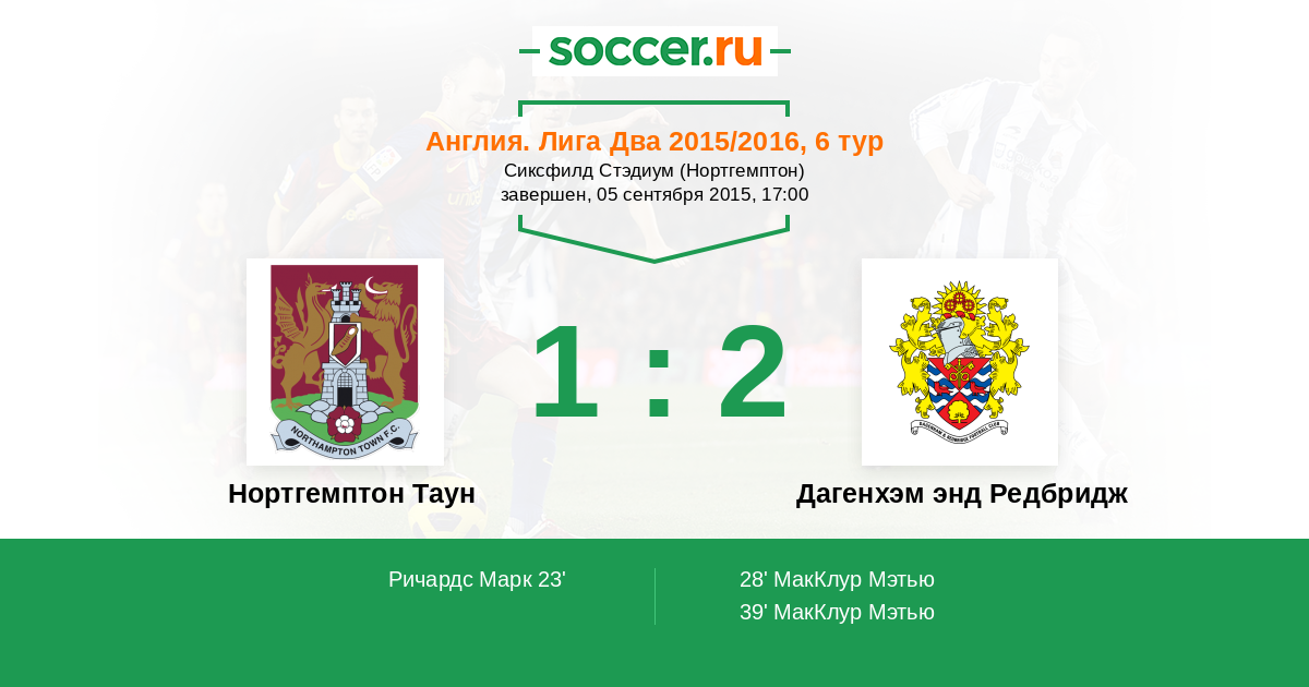 Нортгемптон Таун - Дагенхэм энд Редбридж: обзор матча 5 сентября 2015