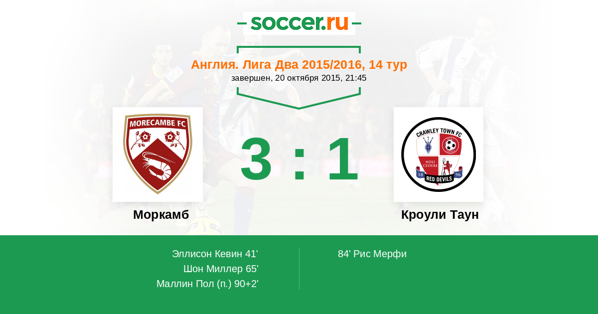 Моркамб - Кроули Таун: обзор матча 20 октября 2015