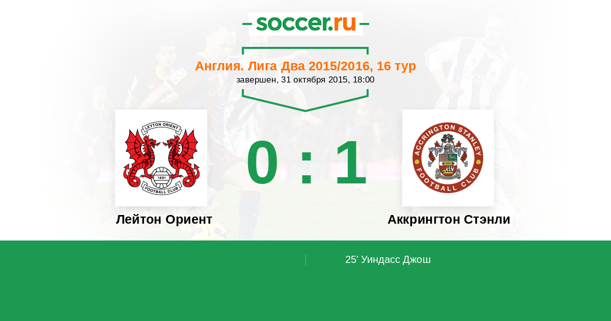 Лейтон Ориент - Аккрингтон Стэнли: обзор матча 31 октября 2015