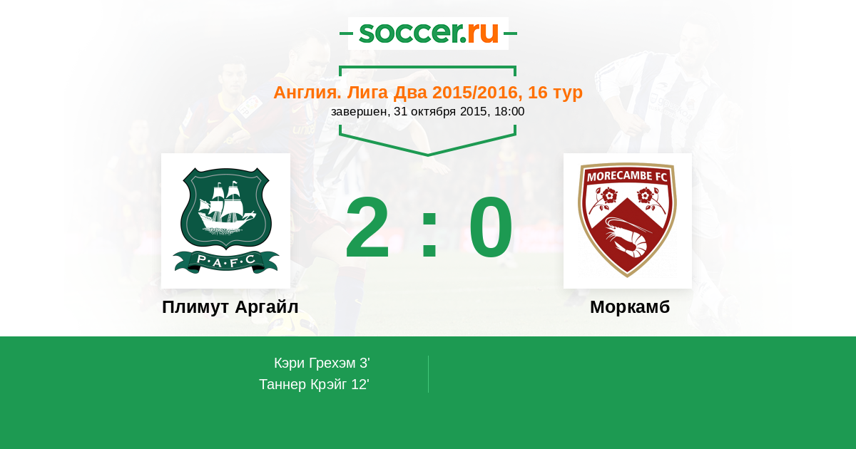 Плимут Аргайл - Моркамб: обзор матча 31 октября 2015