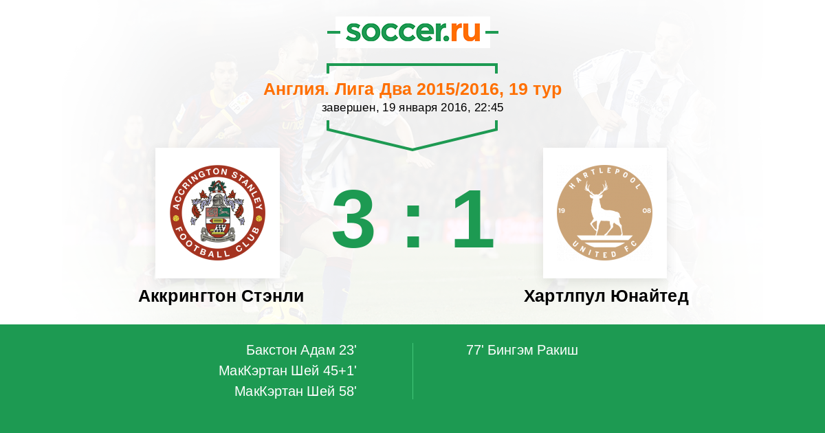 Аккрингтон Стэнли - Хартлпул Юнайтед: обзор матча 19 января 2016