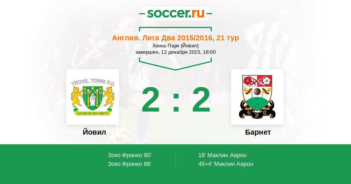 Йовил - Барнет: обзор матча 12 декабря 2015