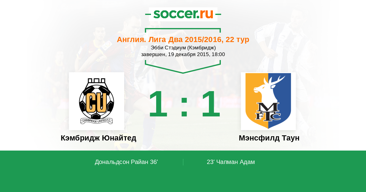 Кэмбридж Юнайтед - Мэнсфилд Таун: обзор матча 19 декабря 2015