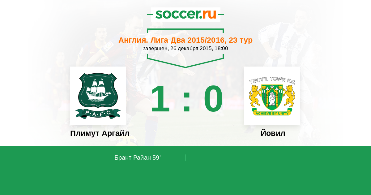 Плимут Аргайл - Йовил: обзор матча 26 декабря 2015