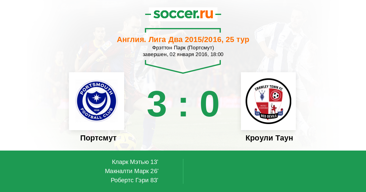 Портсмут - Кроули Таун: обзор матча 2 января 2016
