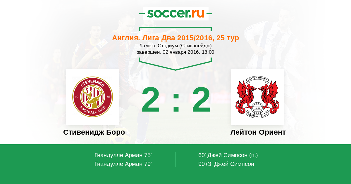 Стивенидж Боро - Лейтон Ориент: обзор матча 2 января 2016