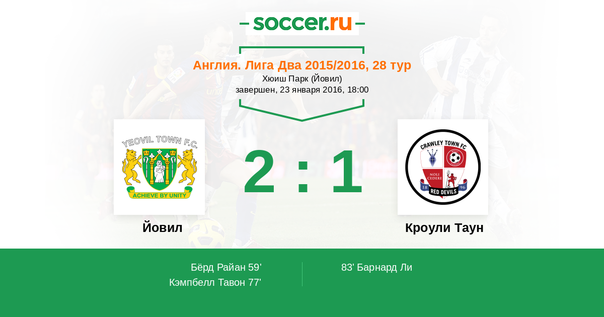 Йовил - Кроули Таун: обзор матча 23 января 2016
