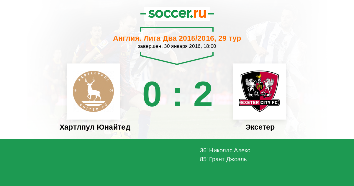 Хартлпул Юнайтед - Эксетер: обзор матча 30 января 2016