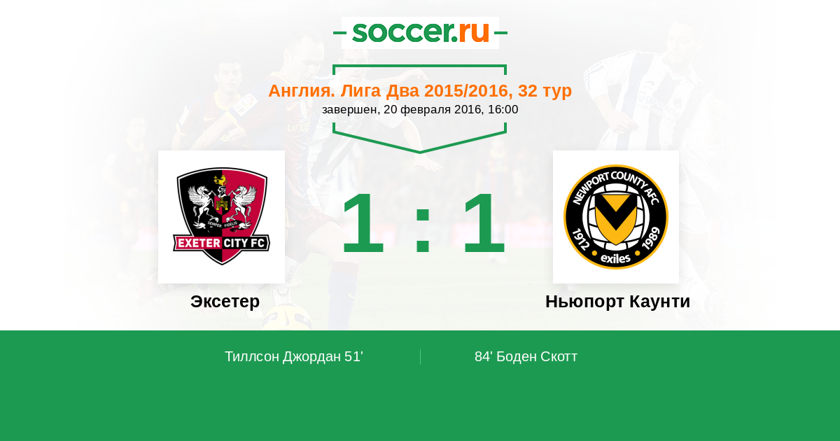 Эксетер - Ньюпорт Каунти: обзор матча 20 февраля 2016