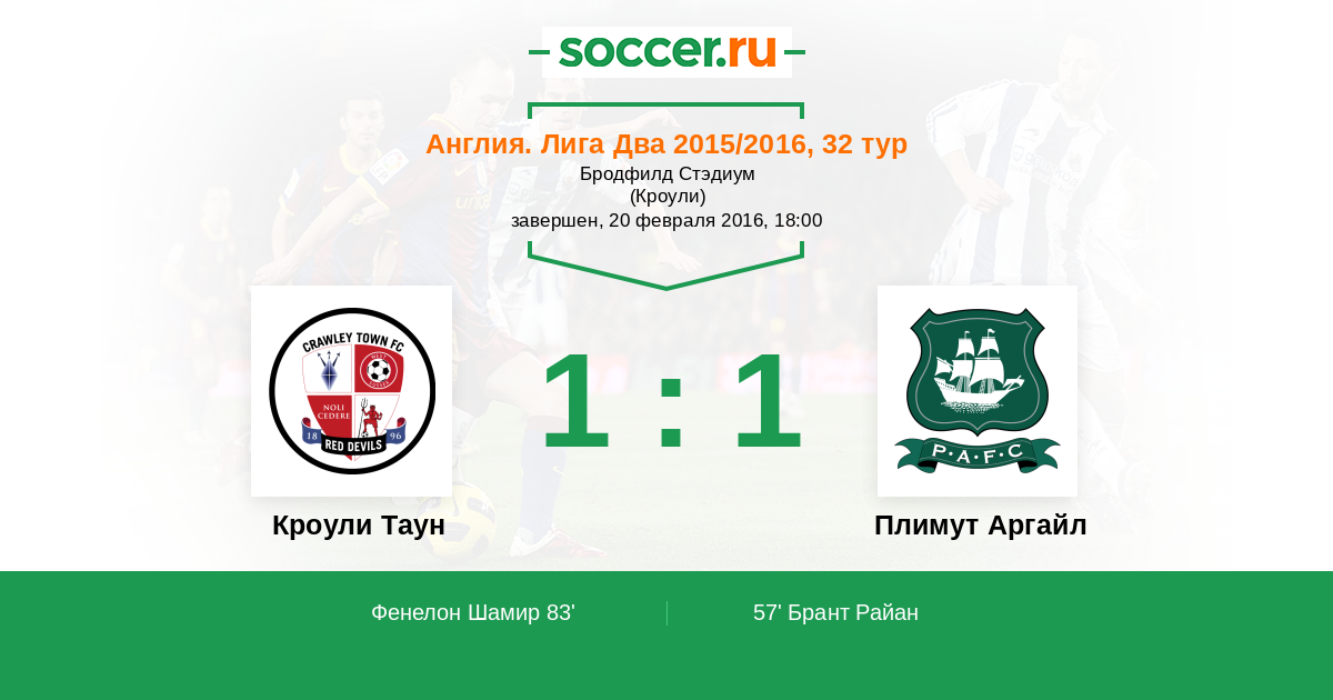 Кроули Таун - Плимут Аргайл: обзор матча 20 февраля 2016