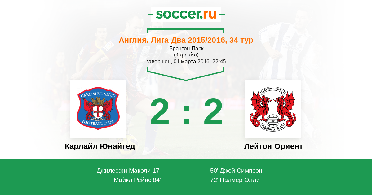 Карлайл Юнайтед - Лейтон Ориент: обзор матча 1 марта 2016