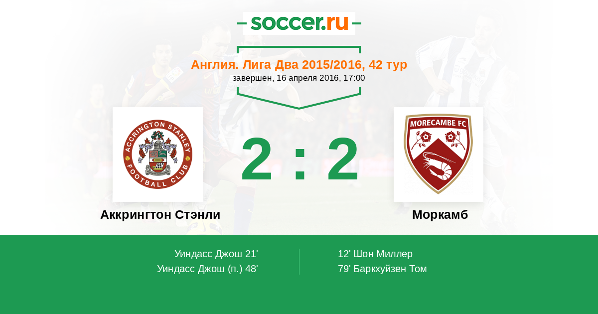 Аккрингтон Стэнли - Моркамб: обзор матча 16 апреля 2016