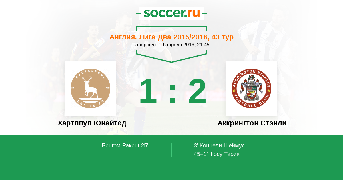 Хартлпул Юнайтед - Аккрингтон Стэнли: обзор матча 19 апреля 2016