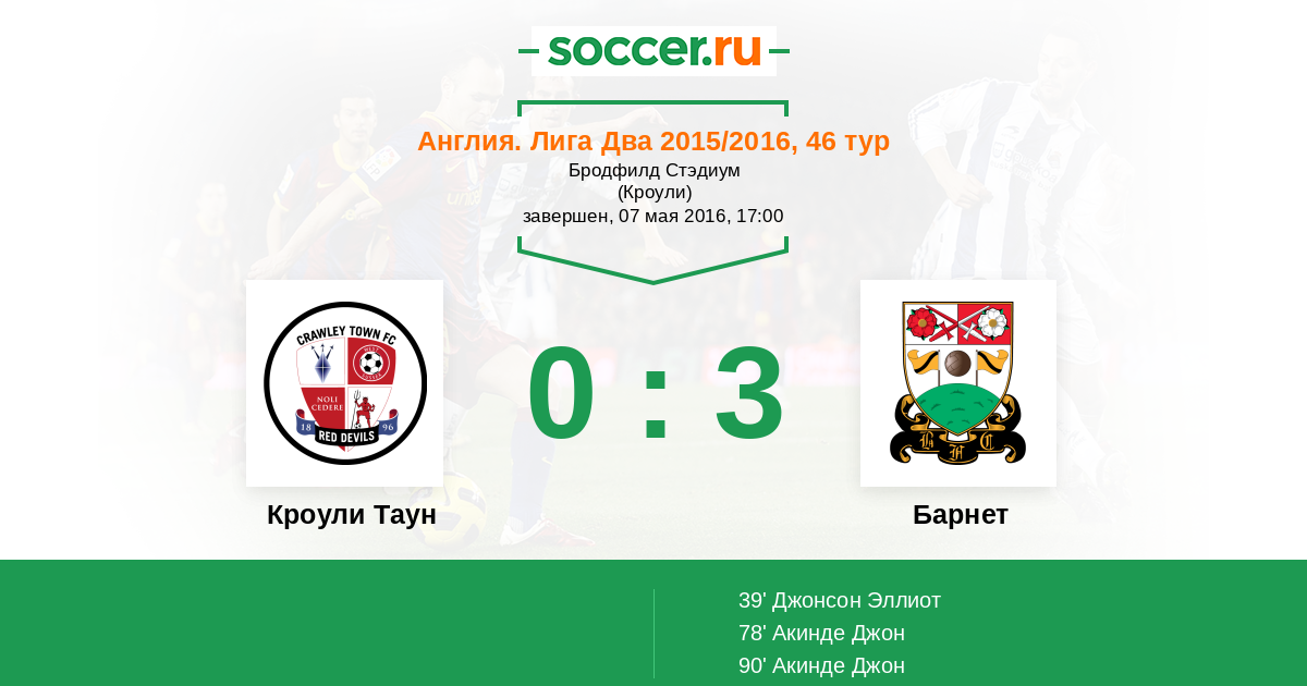 Кроули Таун - Барнет: обзор матча 7 мая 2016