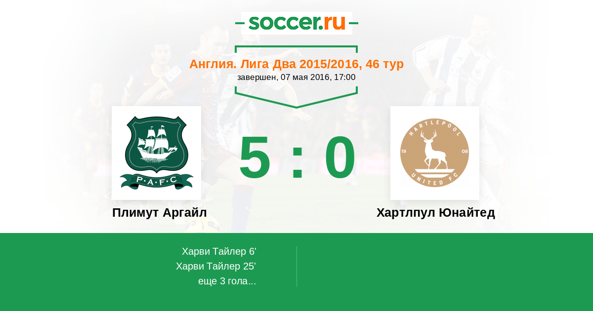 Плимут Аргайл - Хартлпул Юнайтед: обзор матча 7 мая 2016