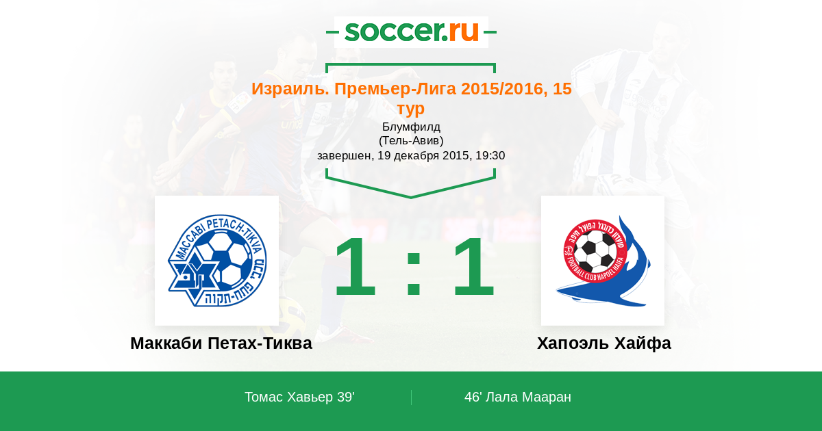 Маккаби Петах-Тиква - Хапоэль Хайфа: обзор матча 19 декабря 2015