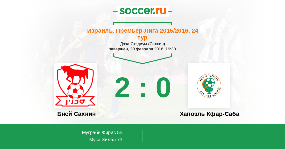 Бней Сахнин - Хапоэль Кфар-Саба: обзор матча 20 февраля 2016