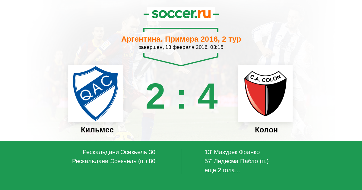 Кильмес - Колон: обзор матча 13 февраля 2016