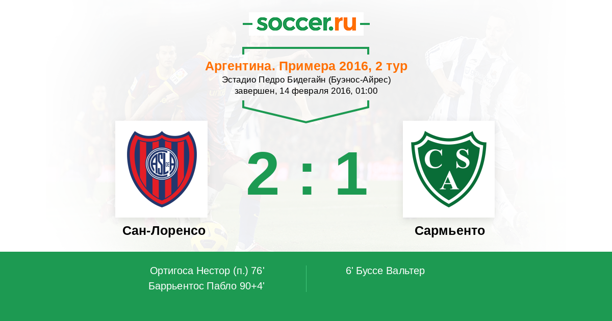 Сан-Лоренсо - Сармьенто: обзор матча 14 февраля 2016